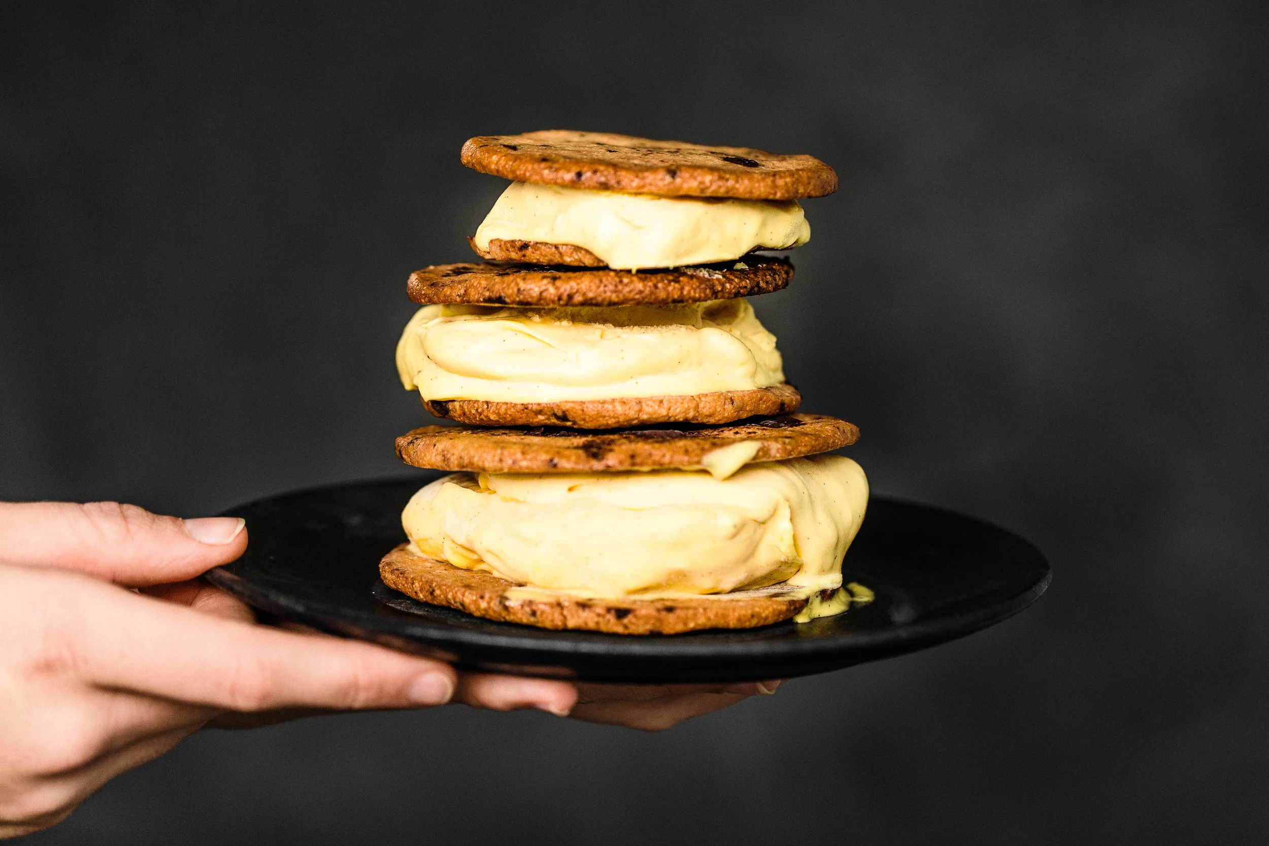 Tip: if you make the cookies, bake them until they're only just golden brown (a tad under cooked) they will be easier to use/ eat the entire ice-cream sandwich because they'll be softer.